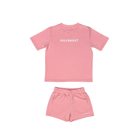Discover the Blush Set, a contemporary streetwear collection crafted for young style enthusiasts seeking comfort without compromise. This curated pairing combines an oversized tee with tailored shorts in a sophisticated blush pink palette. The tee features a refined white silicone chest emblem and signature Movement print on the back, while the shorts echo this design detail with coordinating logo placement. Built from soft, breathable fabric, this set delivers all-day wearability with a clean, minimalist aesthetic. The relaxed tee silhouette pairs seamlessly with true-to-size shorts, creating a versatile foundation for effortless everyday dressing. Premium construction and thoughtful design details make this set a reliable choice for modern youth fashion.