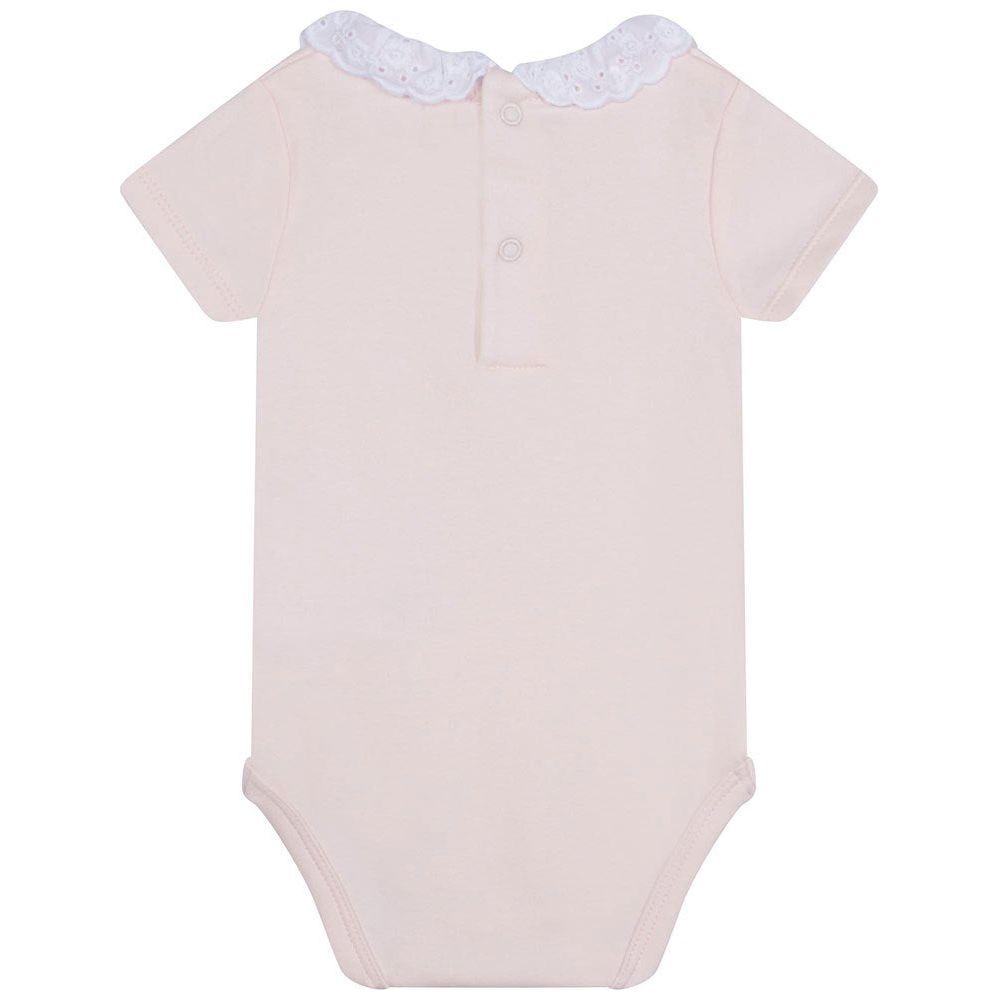 The Detailed Short Sleeve Bodysuit from Carrément Beau is available in multiple colors and is crafted from 100% organic cotton. It features press buttons on the back and between the legs, as well as a beautifully embroidered collar on the neckline. Made from 100% cotton.
